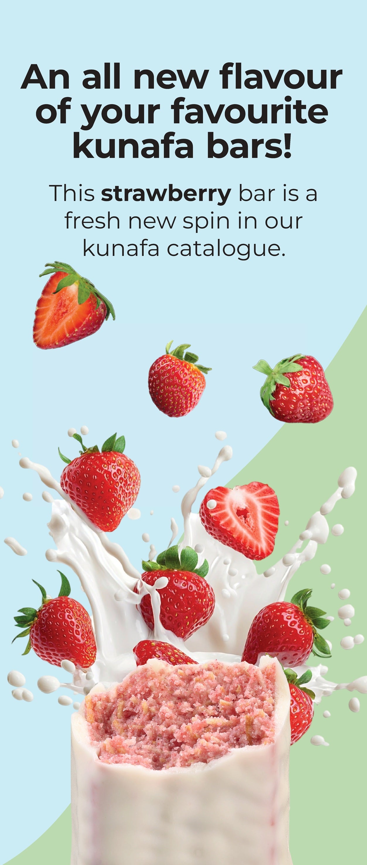 The Strawberry-Kunafa Bar is a luxurious treat that combines rich flavors and irresistible textur...